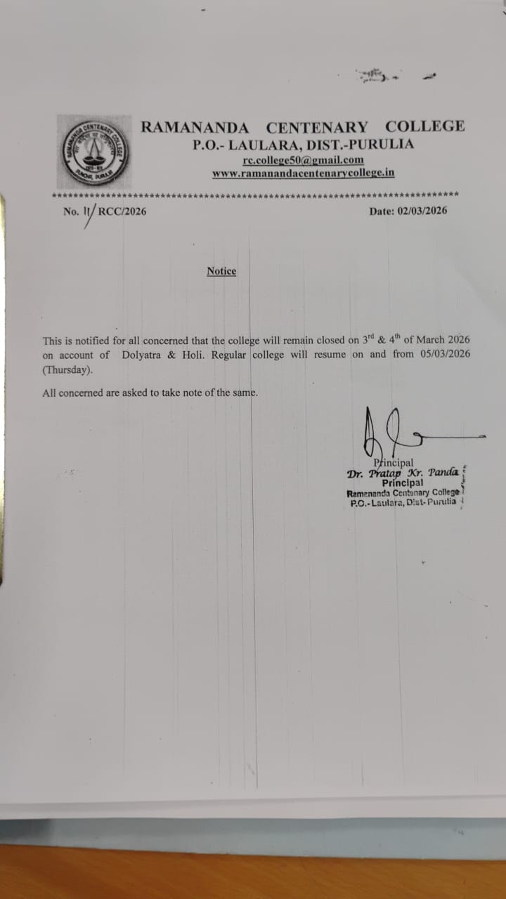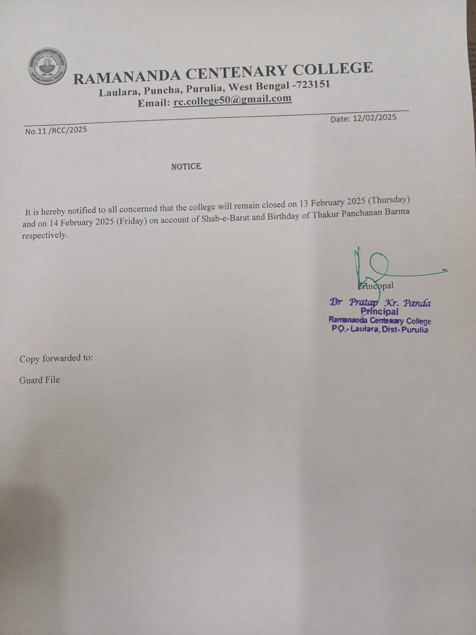 College shall remain closed on 31.03.25 and 01.04.25 on account of Eid-ul-Fitr