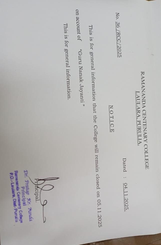 Holiday on account of Guru Nanak's Birthday on 05.11.2025